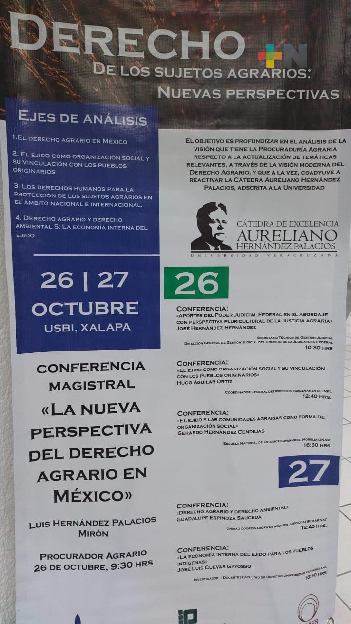 Xalapa, Ver-. Los días 26 y 27 de octubre en la Unidad de Servicios Bibliotecarios y de Información (USBI) plantel Xalapa, se lleva a cabo el seminario titulado Derechos de los sujetos agrarios: nuevas perspectivas, para transmitir a todos los asistentes la nueva visión que la Procuraduría Agraria ha desarrollado en la atención brindada a los sujetos agrarios, indicó José Hernández Hernández, secretario técnico de la Dirección General de Gestión Judicial del Consejo de la Judicatura Federal.