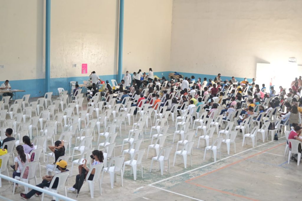 «Vacunando a grupo de edad de 12 a 17 años con la vacuna pfizer, y la meta estimada para este día que es el único sería de 1500 personas, el total de adolescentes que ha sido bastante abundante, durante toda la mañana desde que empezamos no hemos parado» refirió Arturo Mejía, Coordinador del Bienestar.