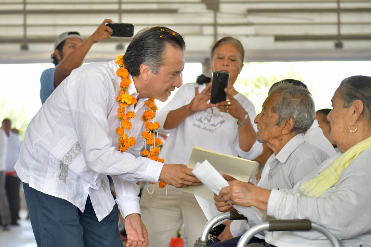 En el evento, el señor Aurelio Cruz Hernández, de 104 años de edad, recibió del Gobernador su documento agrario que hace justicia a una larga y calamitosa espera, atestiguado por el secretario de Gobierno, Eric Patrocinio Cisneros Burgos; la fiscal Verónica Hernández Giadáns; beneficiarios y autoridades del RAN, la Procuraduría Agraria y el Ayuntamiento.