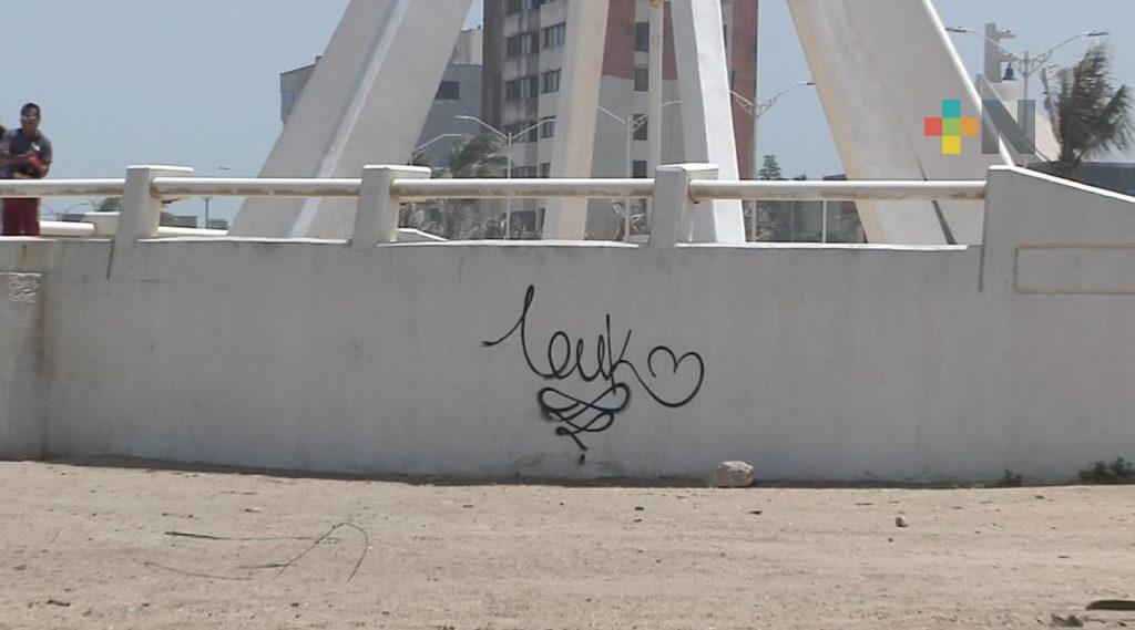 Coatzacoalcos. Ver.- Aunque recientemente fue pintada y rehabilitada, la plaza de la Paz ya luce con varios grafitis en el malecón costero de Coatzacoalcos.