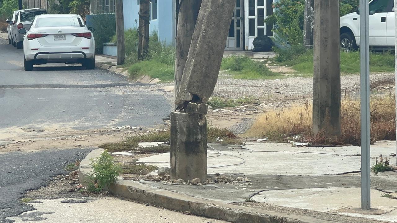 El poste de concreto que se ubica en la calle Úrsulo Galván y avenida Universidad fue reportado desde hace tres meses, todo aparentemente provocado por una unidad de CFE que jaló uno de los cables generando que la estructura se quebrara.