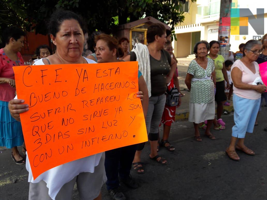 Boca del Río, Ver.- La desesperación por llevar 72 horas sin energía eléctrica hizo que los vecinos de la colonia Casas Tamsa, en Boca del Río bloqueara la calle Manuel Nieto en reclamo a la Comisión Federal de Electricidad.