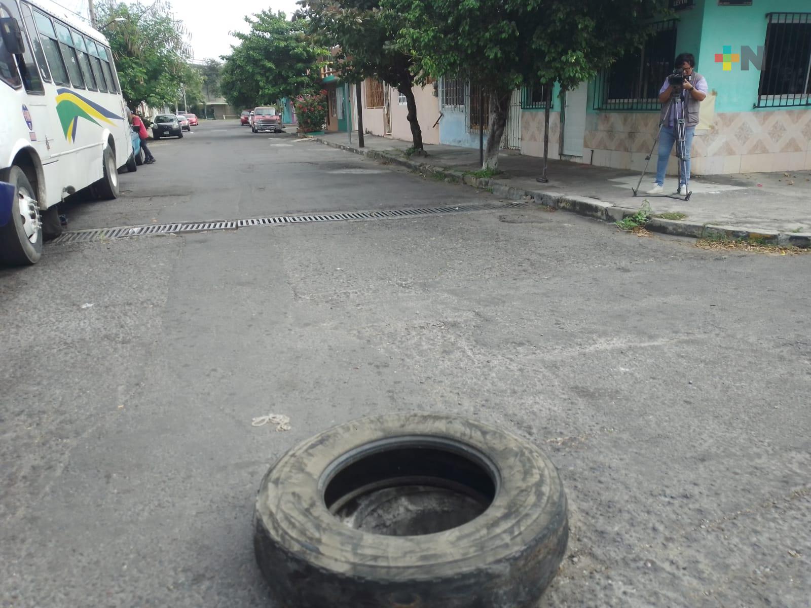 Las mismas personas tuvieron que colocar una llanta que cubra el registro sin tapa, antes de que algún automóvil caiga y se produzca un accidente, mientras exigen a las autoridades atención inmediata.