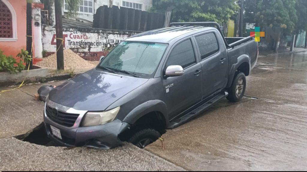 Vehículos varados y socavones tras fuertes lluvias registradas en Coatza