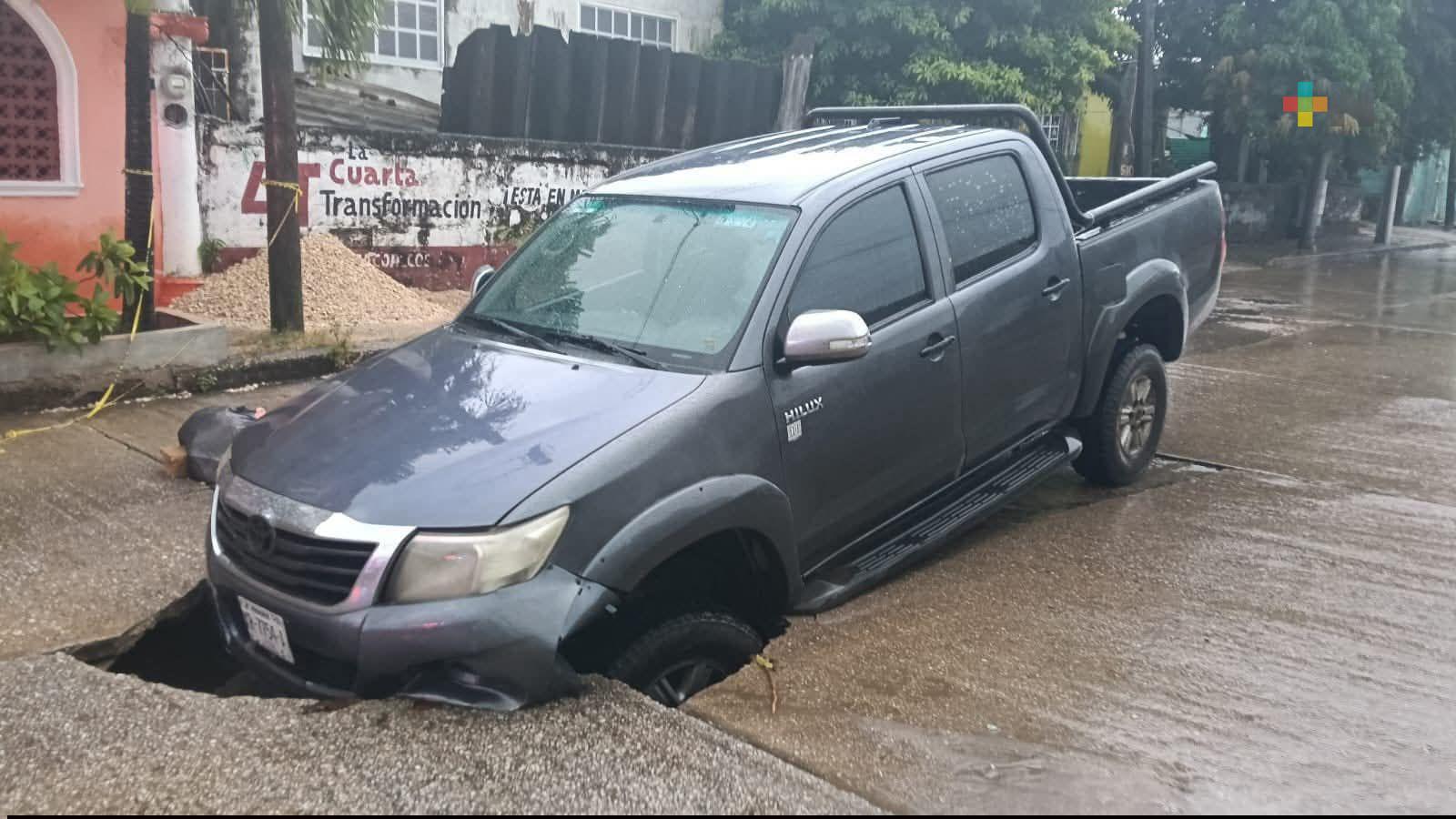 Vehículos varados y socavones tras fuertes lluvias registradas en Coatza
