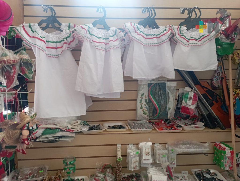 Coatzacoalcos, Ver.- Vendedores fijos y ambulantes ha comenzado a vestir de verde, blanco y rojo las plazas comerciales, el malecón costero y la zona centro de la ciudad con la venta de artículos alusivos al mes patrio.