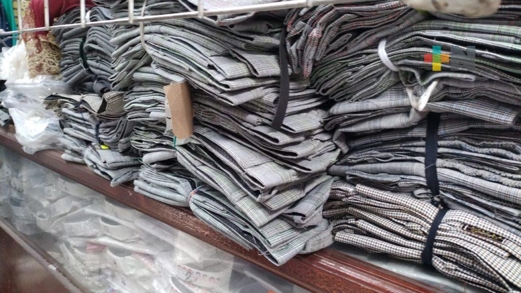 Venta de uniformes escolares a la alza en mercado Jáuregui de Xalapa