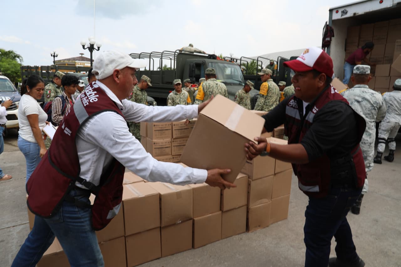 Este lunes en operativo especial y con la Secretarías de la Defensa Nacional, y de Protección Civil se entregaron las primeras 503 canastas en San Juan Evangelista y Texistepec, durante el martes y miércoles la ayuda seguirá fluyendo a las demás localidades afectadas.