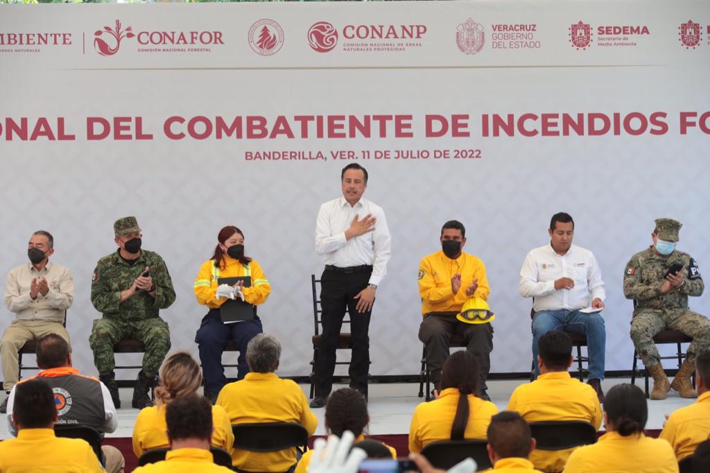 El gobernador Cuitláhuac García Jiménez se sumó a la celebración del Día Nacional del Combatiente de Incendios Forestales, con el fin de concientizar sobre la riesgosa labor, desempeño y alto profesionalismo necesario para la prevención y combate de siniestros para preservar la vida de las personas, la integridad de patrimonios y recursos naturales.