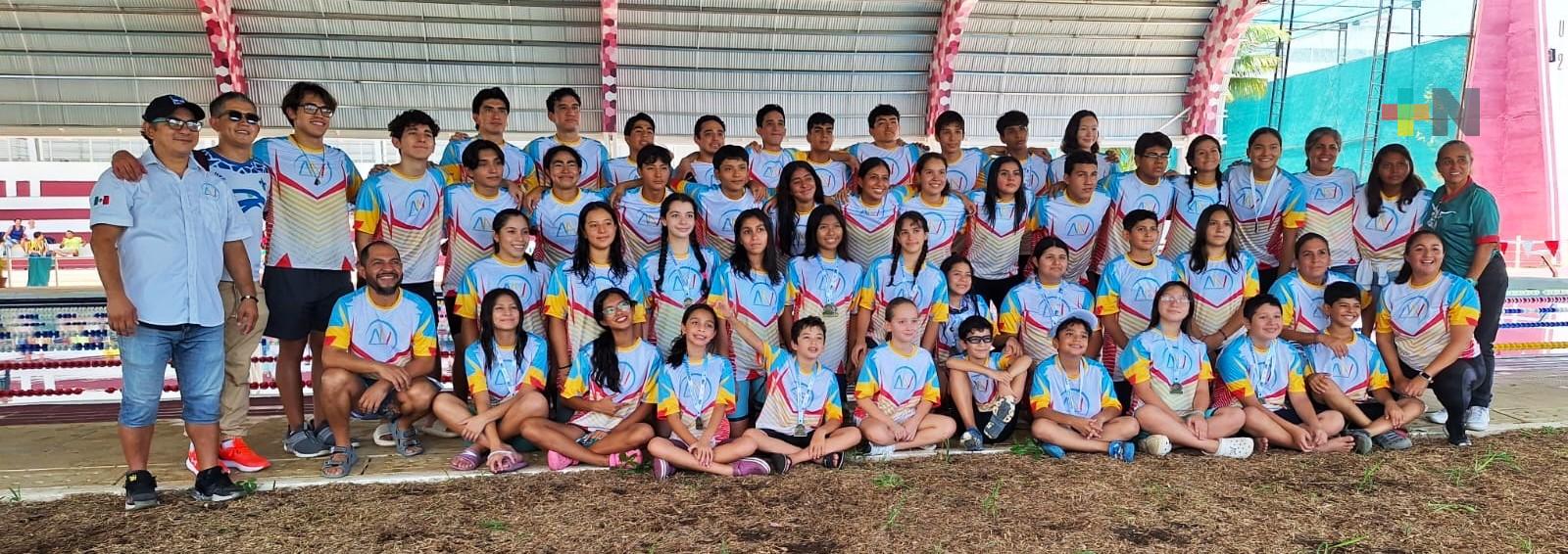 La delegación veracruzana estuvo integrada por 40 nadadores, 20 en la rama femenil e igual número en la rama varonil, quienes demostraron superioridad con los demás estados que participan en la Zona Sur.