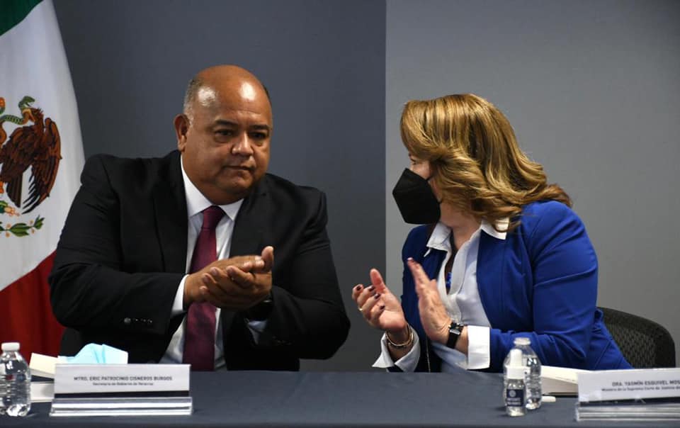 En el evento, el titular de la Segob, coincidió e intercambio opiniones con la Ministra de la Suprema Corte de Justicia de la Nación, Yasmín Esquivel Mossa.