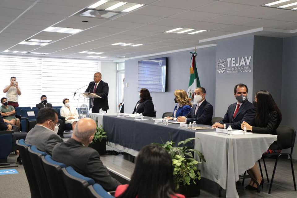 Xalapa, Ver.- Este viernes por la tarde, en representación del gobernador del Estado, Cuitláhuac García Jiménez, el secretario de Gobierno, Eric Cisneros Burgos encabezó la Ceremonia de Presentación e Inicio del Juicio en Línea del Tribunal Estatal de Justicia Administrativa.