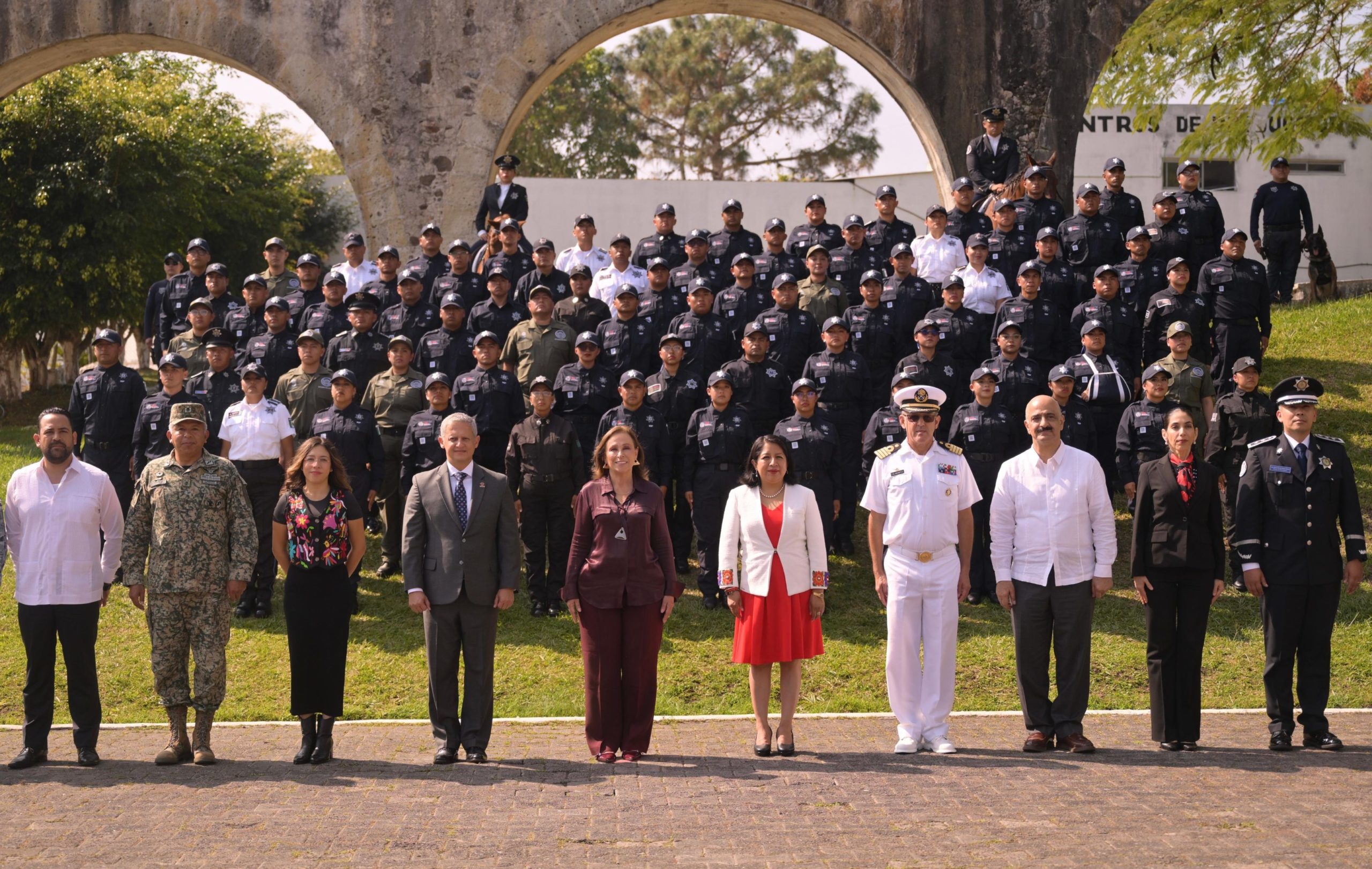 En su intervención, el secretario de Seguridad Pública, Alfonso Reyes Garcés, informó que el grupo está conformado por 53 policías de proximidad estatal, 19 policías municipales de Coatepec, Coatzacoalcos, Cosoleacaque, Orizaba, Pueblo Viejo y Tuxpan, además de siete policías penitenciarios; todas y todos, oficiales íntegros, cercanos y comprometidos con la ciudadanía.