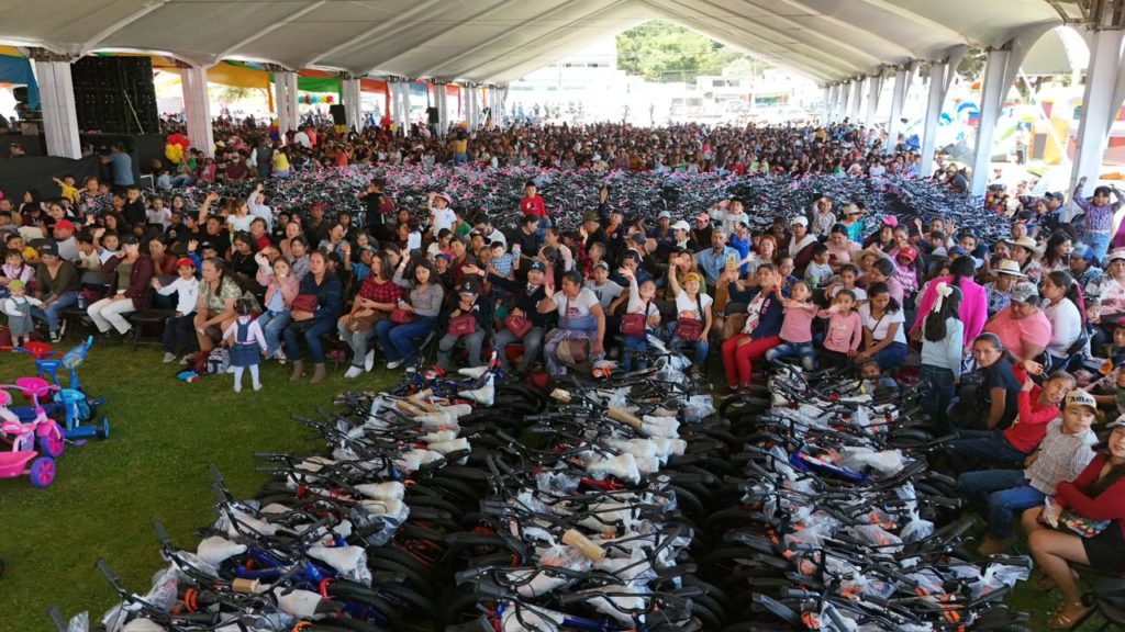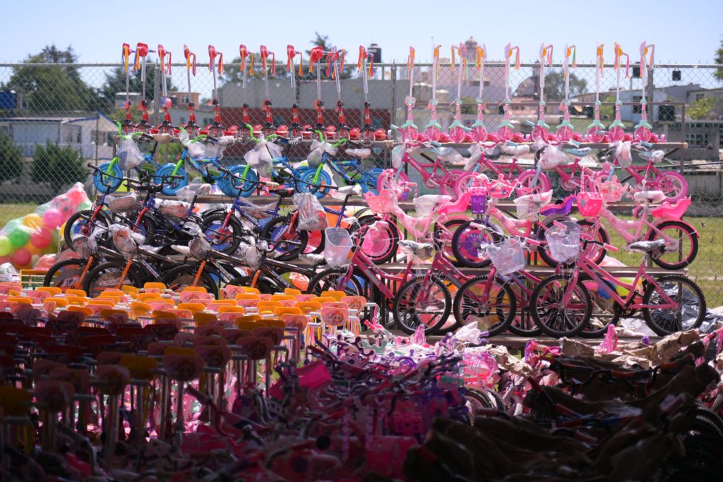 Como parte de esta jornada, entregaron 8 mil 456 obsequios, distribuidos en 2 mil 236 bicicletas, 400 scooters, 620 juguetes diversos —como pistas, cocinitas, muñecos y juegos de mesa—, 200 balones y 5 mil loncheras con alimentos nutritivos.