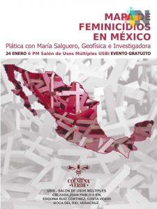 En rueda de prensa las activistas informaron la presentación de un mapa de feminicidios en México, elaborado por la geofísica e investigadora María Salguero, el cual se presentará este jueves 24 de enero a las 18 horas en el salón de Usos múltiples USBI, ubicado en la calzada Juan Pablo Segundo esquina Boulevard Ruíz Cortines, la entrada es gratuita.