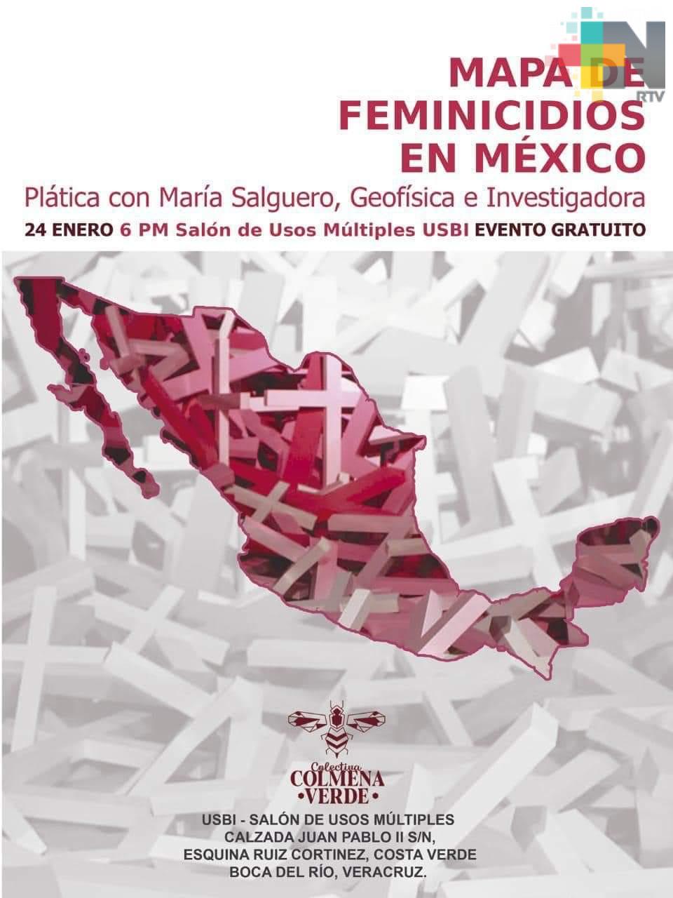 En rueda de prensa las activistas informaron la presentación de un mapa de feminicidios en México, elaborado por la geofísica e investigadora María Salguero, el cual se presentará este jueves 24 de enero a las 18 horas en el salón de Usos múltiples USBI, ubicado en la calzada Juan Pablo Segundo esquina Boulevard Ruíz Cortines, la entrada es gratuita.