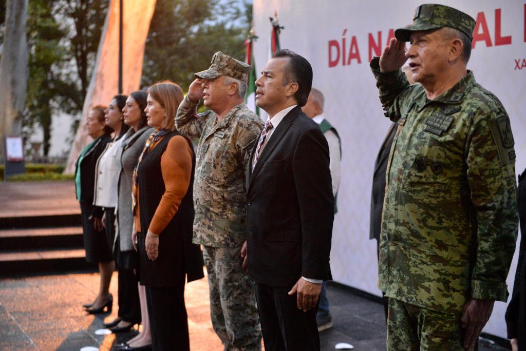 En punto de las 06:56 horas, el gobernador Cuitláhuac García Jiménez presidió la ceremonia de izamiento a media asta de la bandera, acompañado de las secretaria de Protección Civil, Guadalupe Osorno Maldonado quien destacó la importancia de prevenir más que combatir.