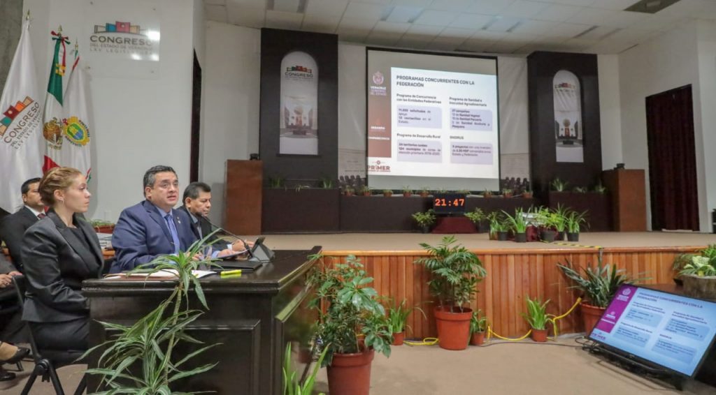 Al comparecer ante la Comisión de Desarrollo Agropecuario, Rural y Forestal de la LXV Legislatura del Estado con motivo de la glosa del Primer Informe de Gobierno, indicó que los 18 ingenios azucareros en operación, aportaron el 39 por ciento de la caña industrializada a nivel nacional, con 22 millones 512 mil 550 toneladas de caña molida, alcanzando una producción de 2 millones 495 mil 591 toneladas de azúcar estándar, correspondiente al 40 por ciento de la producción nacional.