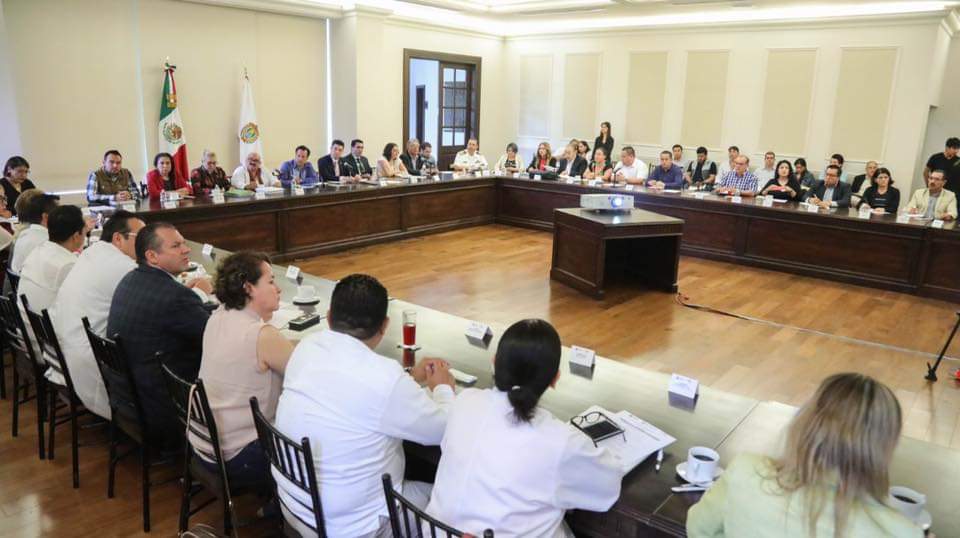 Xalapa, Ver.- El gobernador Cuitláhuac García Jiménez encabezó la sesión extraordinaria del Consejo Estatal de Salud, a fin de implementar las indicaciones que hicieron llegar los especialistas epidemiólogos de la Secretaría de Salud federal, específicamente en esta etapa de transición de la etapa 1 a la 2 con respecto al Covid-19.