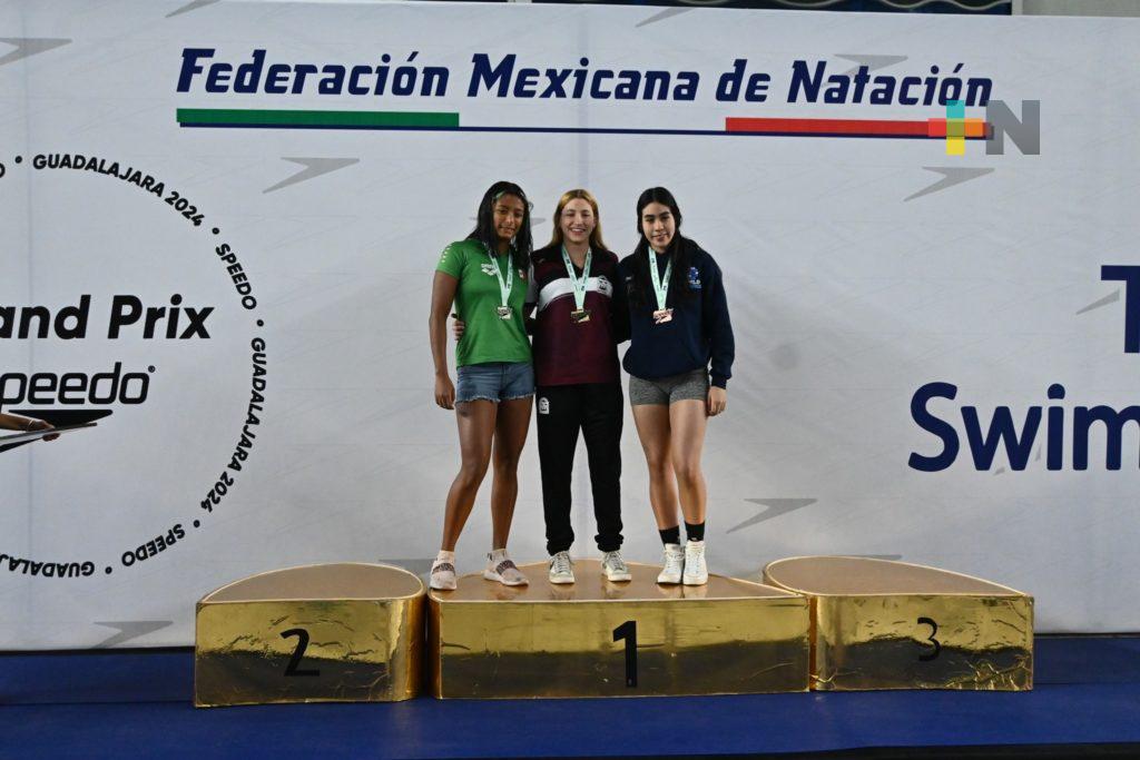 Zapopan.- En la segunda jornada de actividades del Grand Prix de Natación Curso Largo 2024, la delegación de Veracruz sumó más preseas en su cuenta al conseguir tres platas y siete bronces para un total de diez medallas en la competencia que se realiza en Zapopan, Jalisco.