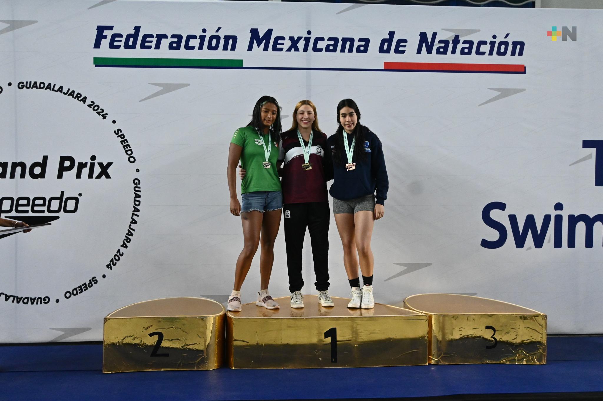 Zapopan.- En la segunda jornada de actividades del Grand Prix de Natación Curso Largo 2024, la delegación de Veracruz sumó más preseas en su cuenta al conseguir tres platas y siete bronces para un total de diez medallas en la competencia que se realiza en Zapopan, Jalisco.