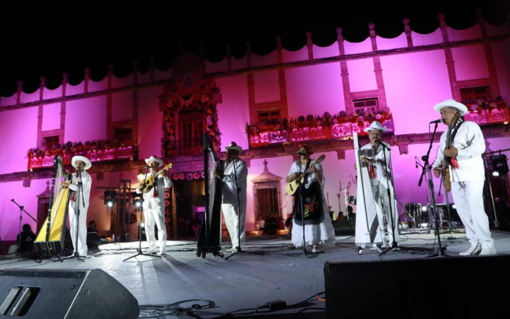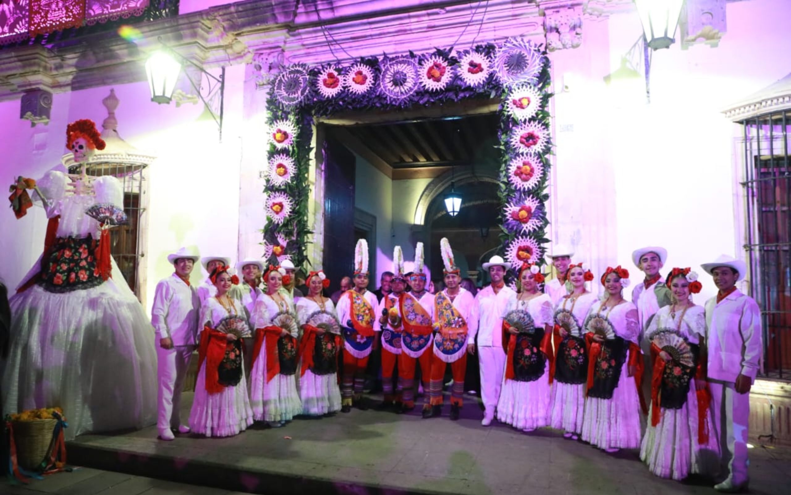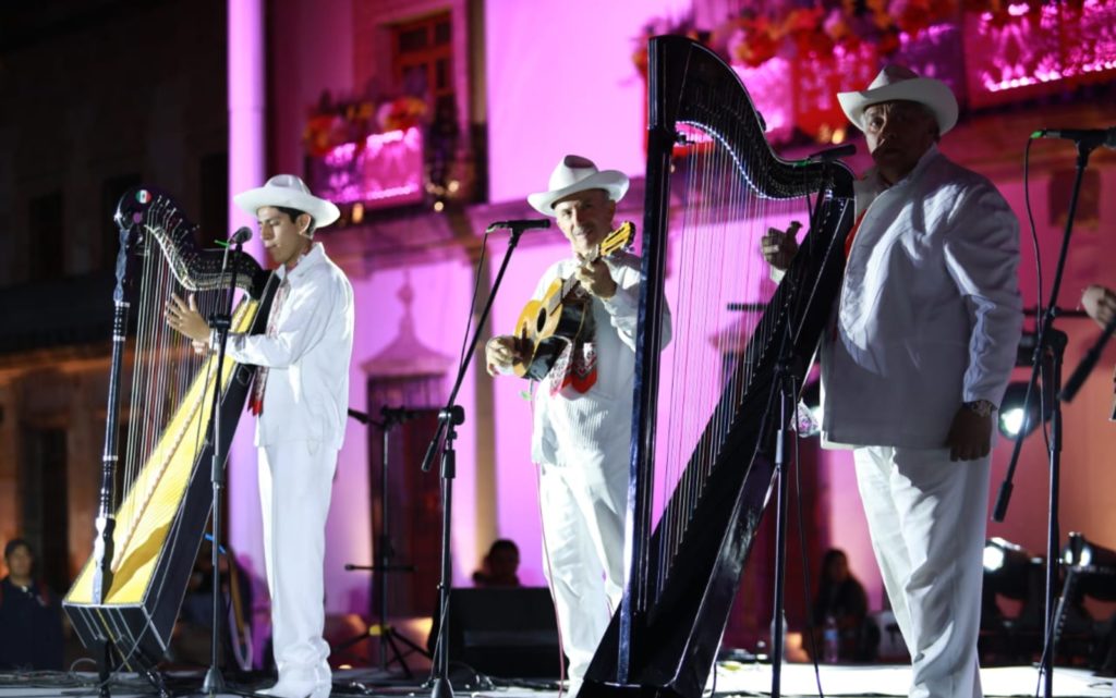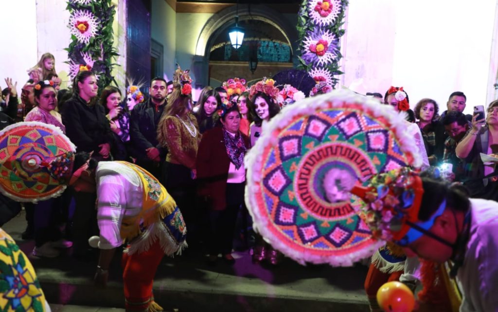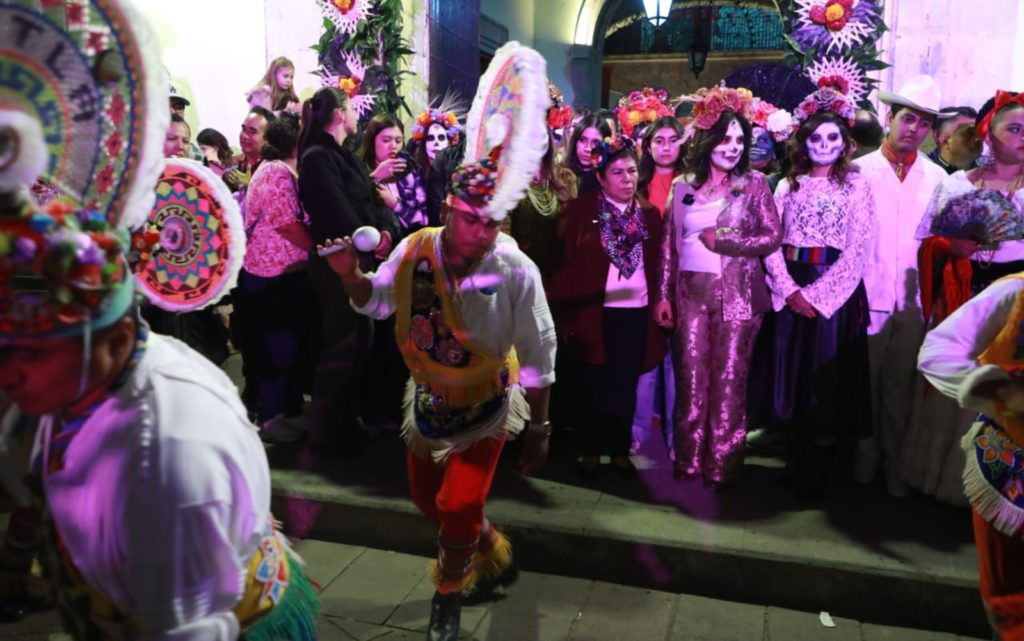 Las autoridades encabezaron el Recorrido de Arcos, Fachadas y Espacios del Centro Histórico, decorados con motivos alusivos a la celebración, tapetes de aserrín multicolor y altares dedicados a los fieles difuntos. Durante el trayecto, la Banda Sinfónica del Estado interpretó La Bamba y la Marcha de Zacatecas, emblemas musicales de esta unión cultural.