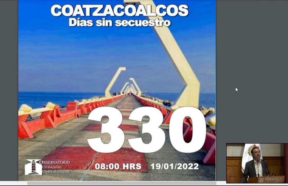 Ejemplo claro del gran trabajo coordinado con el Gobierno Federal para la pacificación del país, es que Coatzacoalcos lleva ya 330 días sin el registro de secuestro.