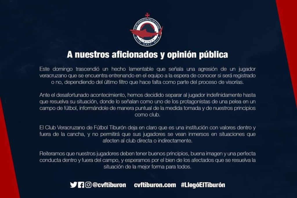 Por agredir a árbitro en juego amistoso, separan a jugador del Club Veracruzano de Futbol Tiburón
