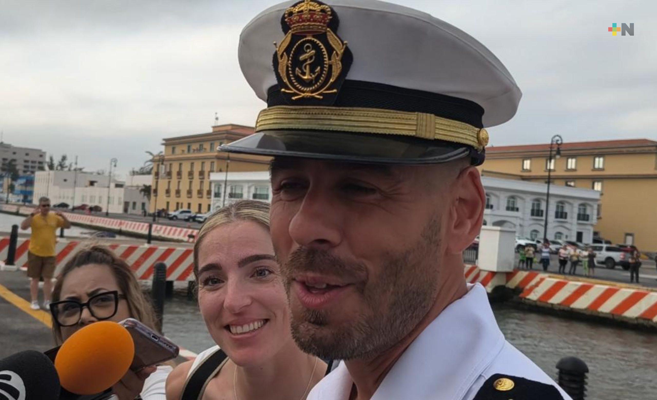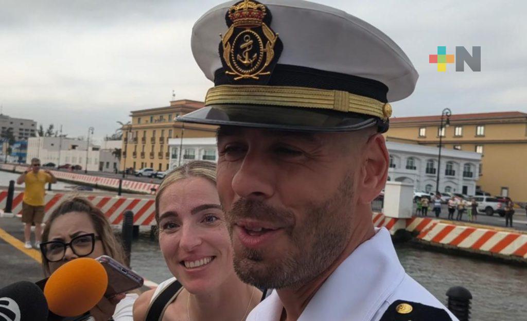 Nuria González también viajó desde el viejo continente al puerto de Veracruz para volver a ver a Francisco Domínguez, su novio, quién forma parte de la tripulación de 255 elementos del barco español.