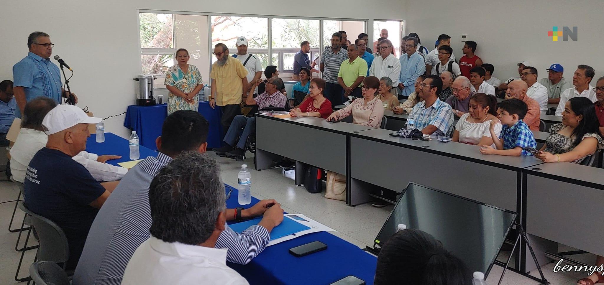 Miguel Elizondo Elizondo, representante de la asociación de egresados del Ilustre Instituto Veracruzano, también le hizo entrega de un reconocimiento a Paz Cinta.