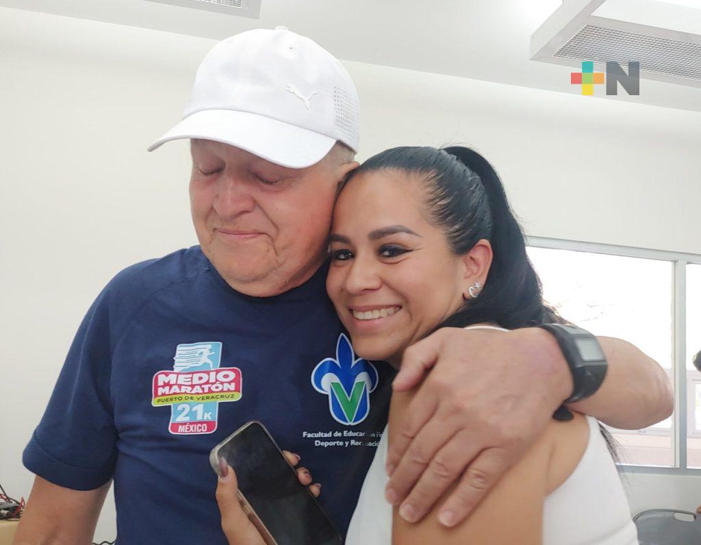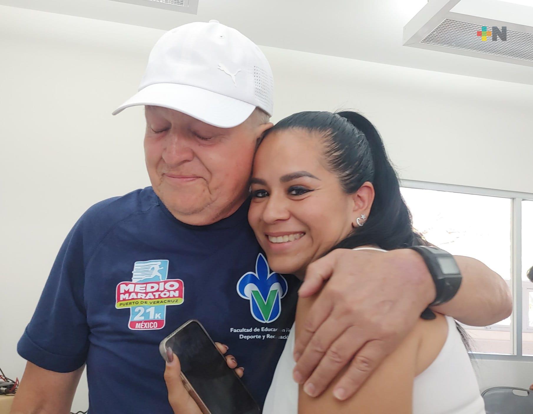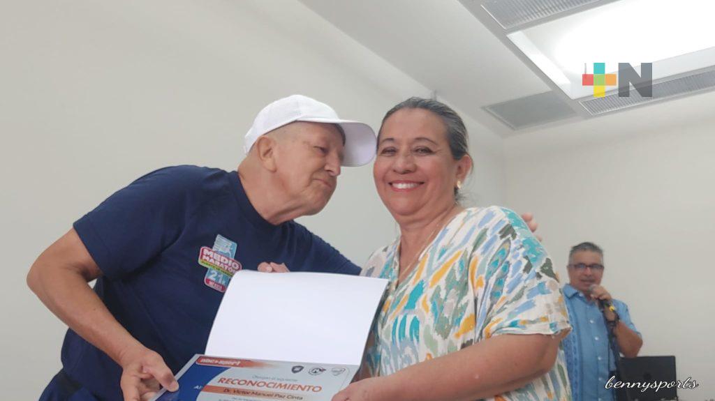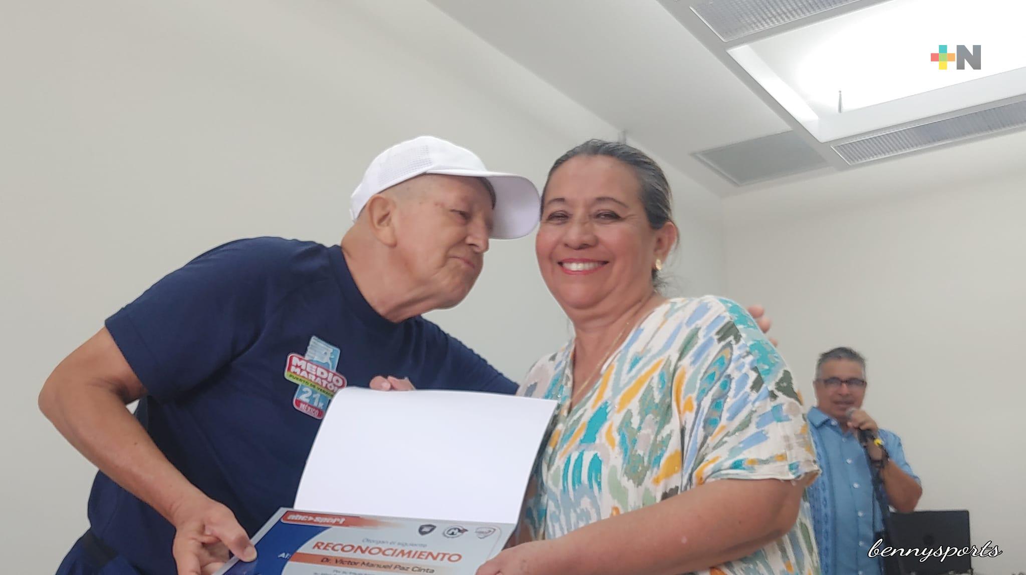 Primero, un reconocimiento por parte de su alma mater y que le entregó Santiago Castineira Mendoza, director de la Facultad de Educación Física de la Universidad Veracruzana (FEFUV).
