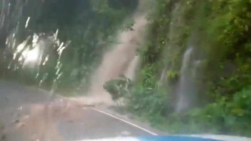 En la zona serrana de Yecuatla, en el sitio conocido como la «Z» se registra un desbordamiento de agua semejante a una cascada lo que dificulta el transitar de automóviles sobre la carretera Xalapa-Misantla.