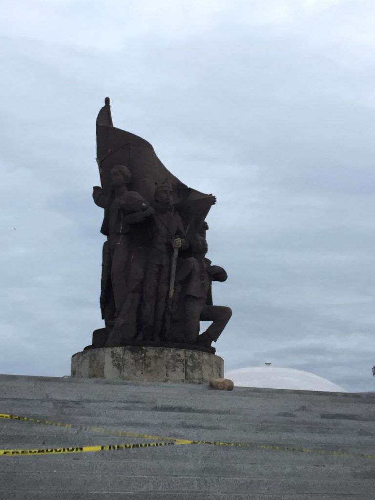 Veracruz, Ver.- Los fuertes vientos del norte, cuya racha máxima superó los 100 kilómetros por hora en la zona conurbada Veracruz-Boca del Río derribó una pequeña parte de la base del monumento a los Niños Héroes.