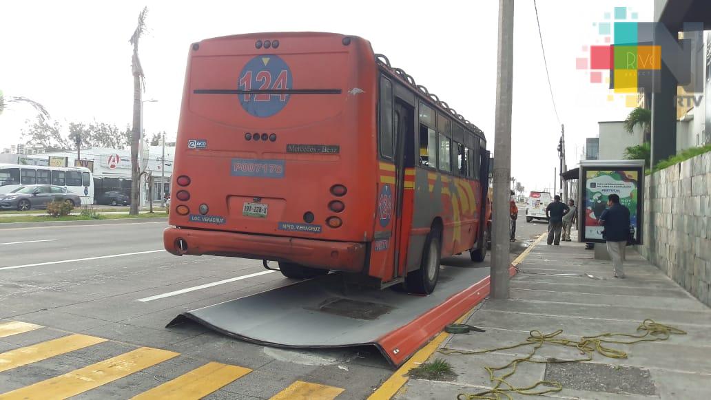 Boca del Río, Ver.- El viento del norte provocó el desprendimiento del techo de un camión urbano de la ruta Bolívar que circulaba sobre la avenida Ruiz Cortines de Boca del Río.