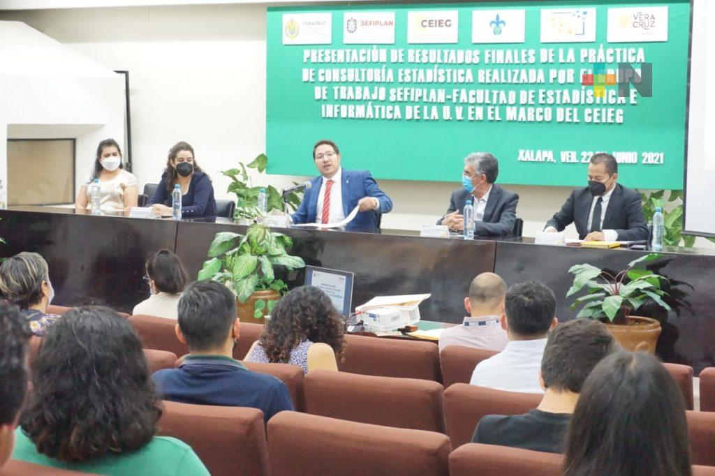 Xalapa, Ver.- En un ejercicio inédito, la Secretaría de Finanzas y Planeación (SEFIPLAN) y la Universidad Veracruzana (UV) vincularon a los sectores público y académico mediante la conformación de un grupo de trabajo encargado de realizar la Práctica de Consultoría Estadística, como parte de los trabajos del Comité de Información de Estadística y Geografía (CEIEG) que contribuirán a sustentar la toma de decisiones para el bienestar social.