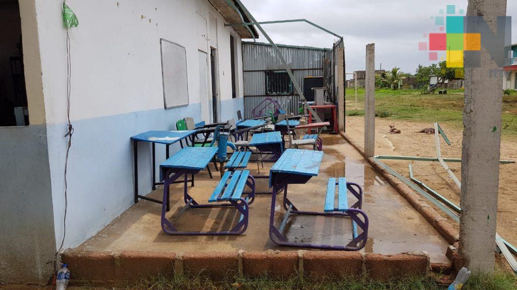 En la colonia Veracruz al poniente de Coatzacoalcos, la escuela primaria Quetzalcóatl, resultó con afectaciones en un aula que había sido habilitada con láminas, pero el viento la destrozó por lo que sus directivos solicitaron el apoyo de la administración actual.