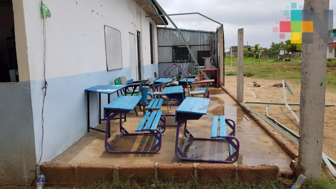 En la colonia Veracruz al poniente de Coatzacoalcos, la escuela primaria Quetzalcóatl, resultó con afectaciones en un aula que había sido habilitada con láminas, pero el viento la destrozó por lo que sus directivos solicitaron el apoyo de la administración actual.