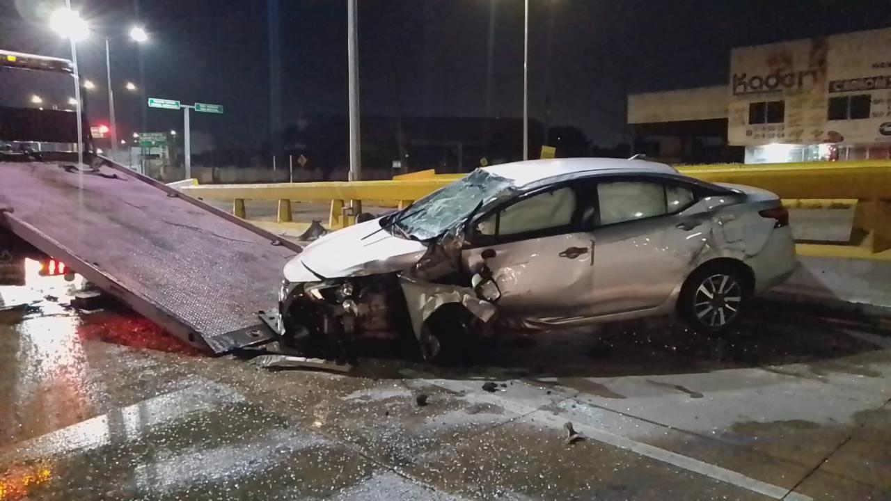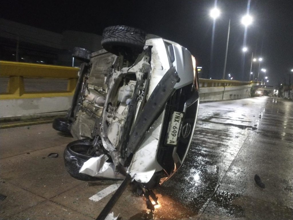 El accidente ocurrió cuando dicha unidad transitaba de norte a sur sobre Zaragoza y al momento de incorporarse a la carretera transístmica, su conductor perdió el control y chocó contra el muro de contención del distribuidor vial.