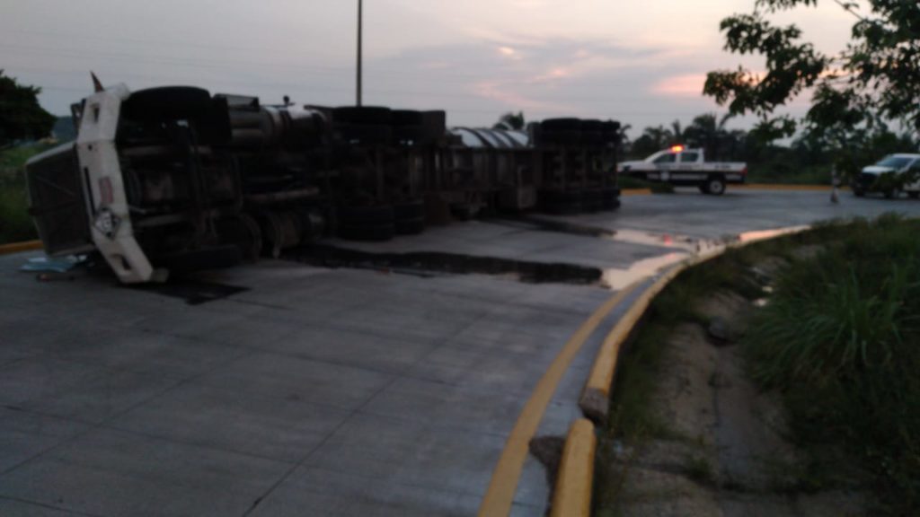 Vuelca autotanque cargado en Coatzacoalcos
