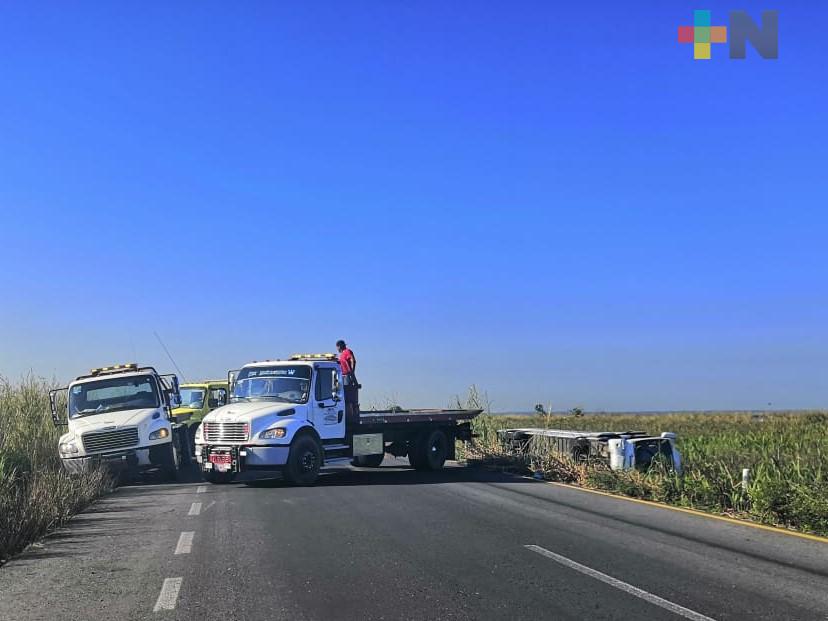 Vuelca camión en carretera Minatitlán-Coatzacoalcos; dos lesionados