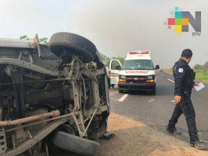 Coatzacoalcos, Ver.- Una camioneta que transportaba aceite para autos volcó sobre la carretera Coatzacoalcos-Minatitlán, conocida como Las Matas.