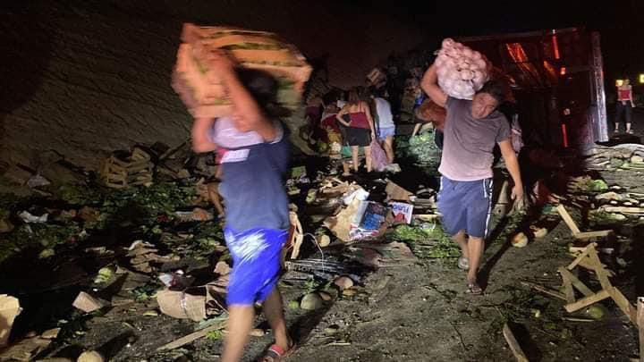 Al lugar rápidamente llegaron habitantes de la zona para llevarse bultos de tomates, cebollas, chiles, sin importar la presencia del conductor.
