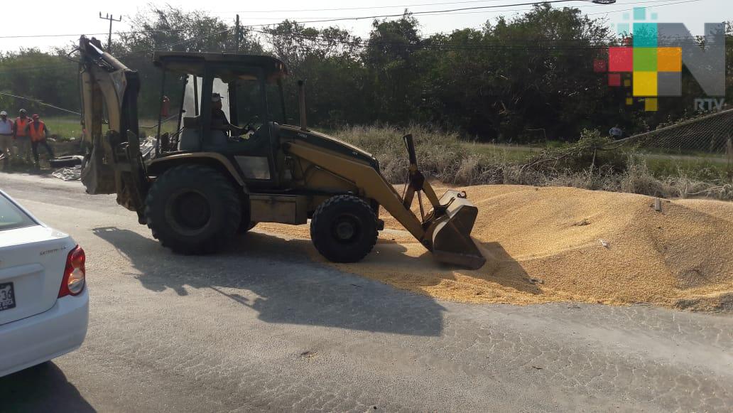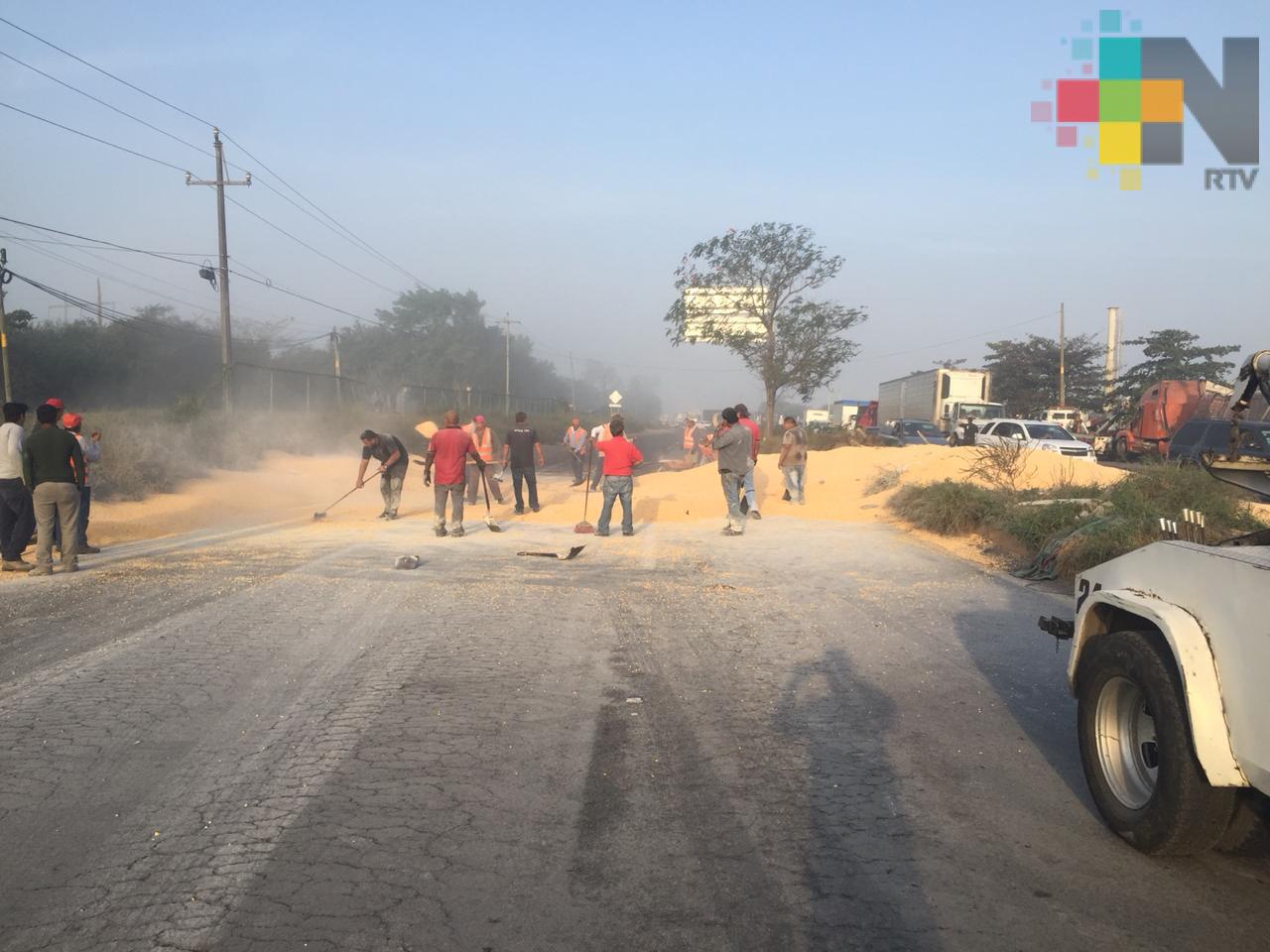 Veracruz, Ver.- Un tráiler cargado con varias toneladas de maíz volcó sobre la carretera federal Veracruz-Xalapa, sin embargo no se reportaron víctimas ni lesionados.