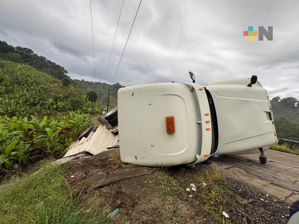Vuelca tráiler por deslave en carretera Tlapacoyan-Plan de Arroyos
