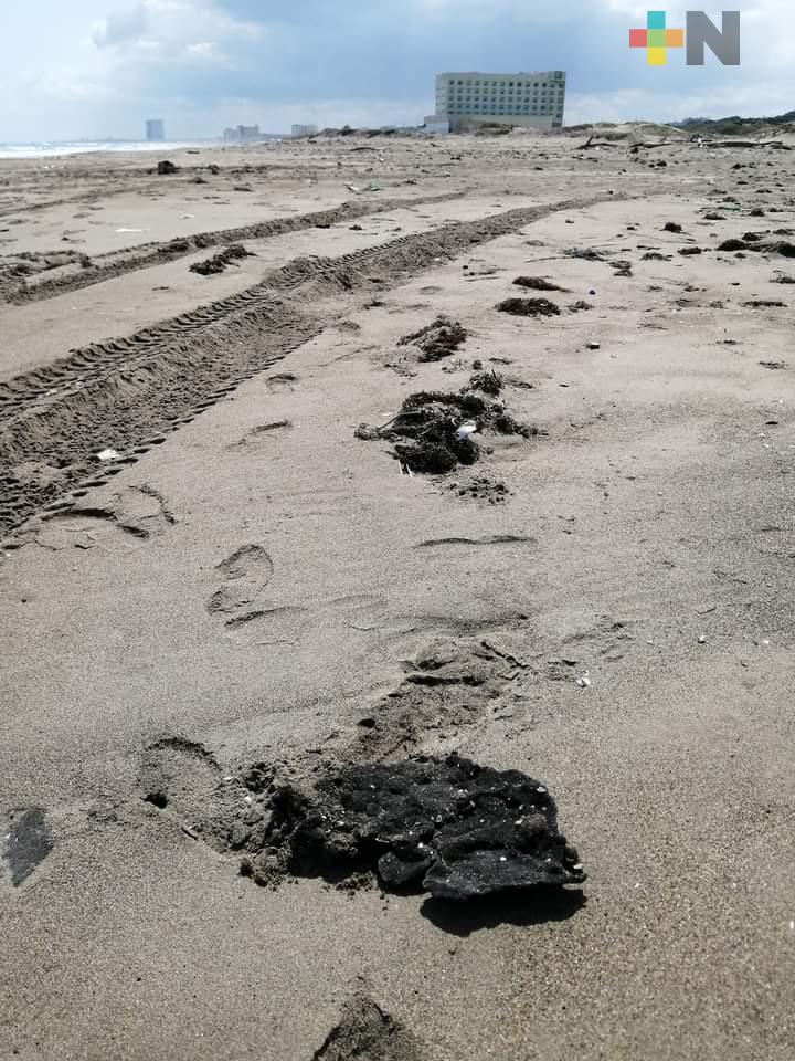 Coatzacoalcos, Ver.- Este jueves por la mañana recalaron restos de chapopote de diversas dimensiones en las playas de este puerto, mismos que pudieron apreciarse en más de ocho kilómetros de la franja costera.