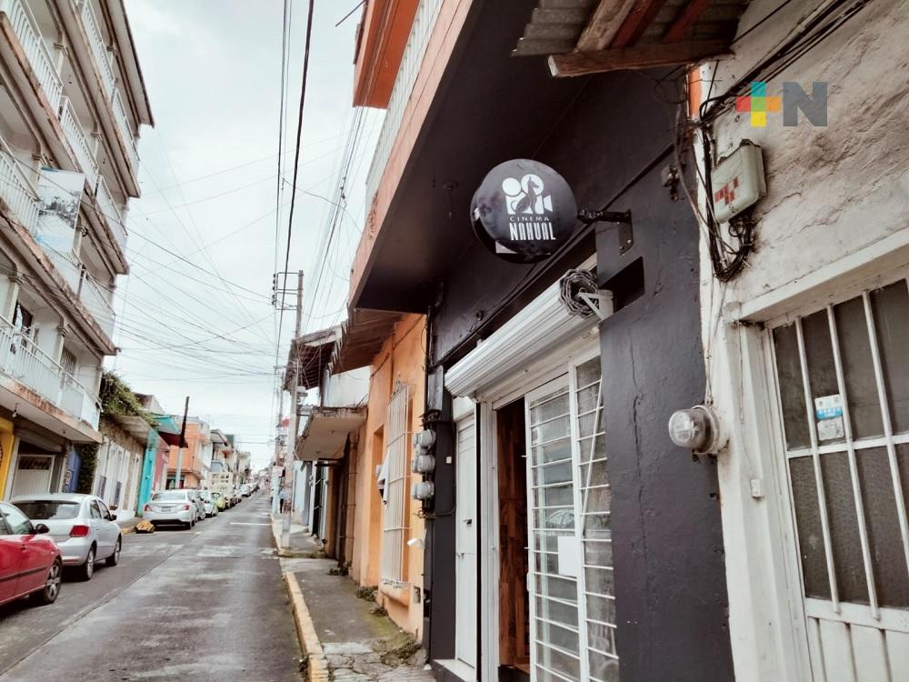 Xalapa, Ver.- En la calle José Azueta, en el centro de Xalapa, un grupo de jóvenes adaptó un espacio en obra negra, en una sala de cine independiente.