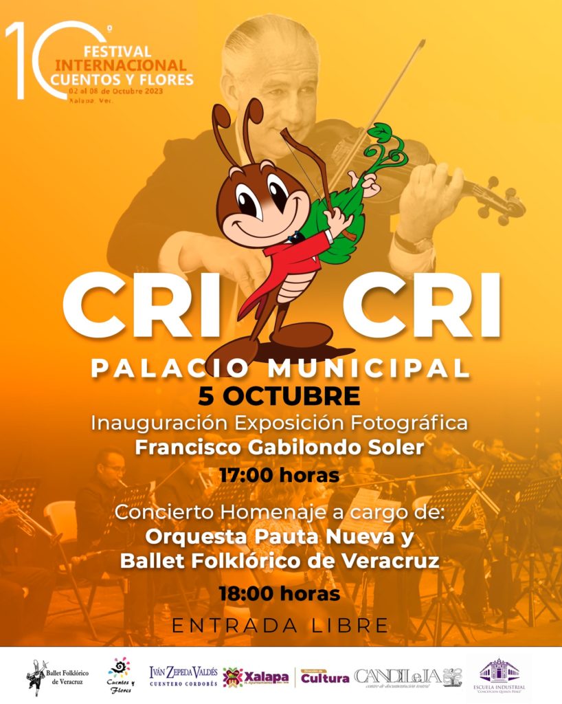 Xalapa, Ver.- El Festival Internacional Cuentos y Flores, que dirige el cuentero cordobés Iván Zepeda, es un evento que celebra la narración oral y que en esta ocasión rinde homenaje al cantautor mexicano de música infantil, Francisco Gabilondo Soler, mejor conocido como “Cri-Cri”.