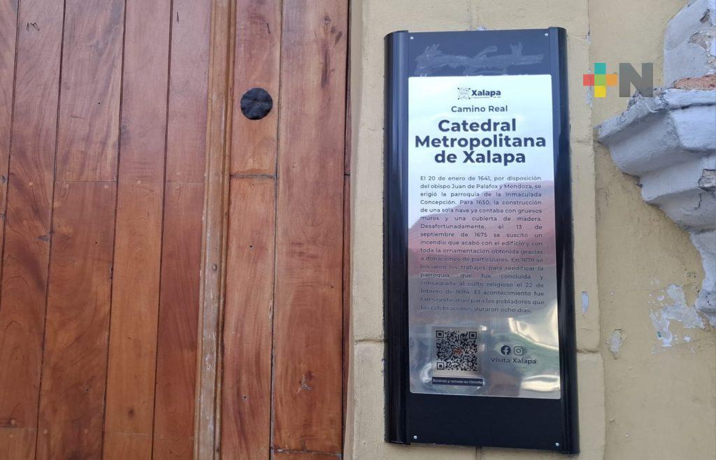 Xalapa, Ver.- La Catedral Metropolitana y otros edificios, monumentos y lugares históricos de Xalapa que se ubican en la ruta del antiguo Camino Real, de 20 de Noviembre, Xalapeños Ilustres a Revolución, en el centro de la ciudad, cuentan con placas informativas en las que se describen sus datos.