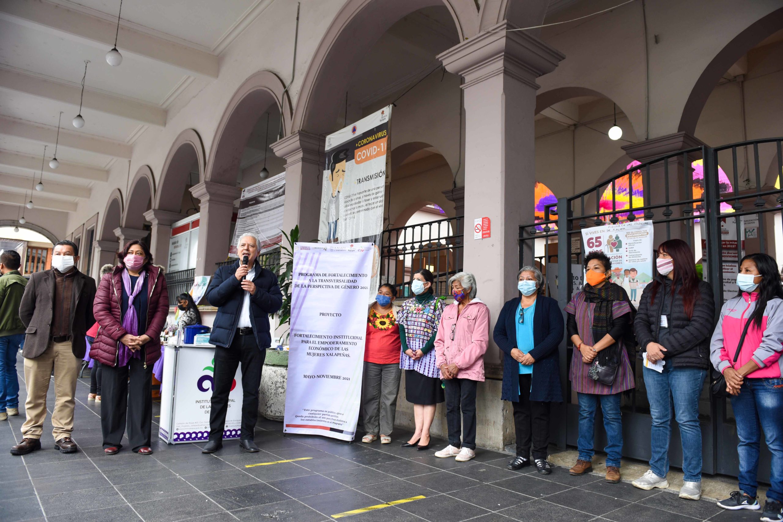 El Edil explicó que esta expo, en la que participan cuatro grupos de mujeres de las colonias El Moral, Veracruz, Casa Blanca y la localidad San Antonio Paso del Toro, se inscribe en el Programa de Fortalecimiento a la Transversalidad de la Perspectiva de Género 2021 y el proyecto Fortalecimiento Institucional para el Empoderamiento Económico de las Mujeres Xalapeñas.