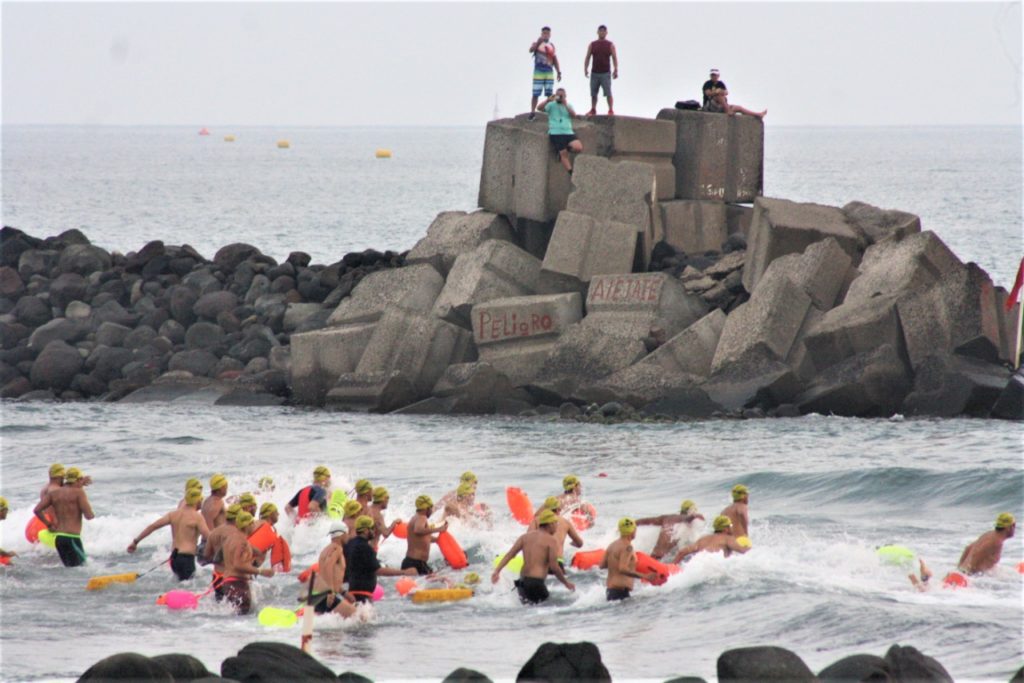 Los primeros nadadores en salir fueron los varoniles, quienes a pesar del intenso oleaje, lograron enderezar el camino en la ruta que fue todo un éxito, la cual estuvo trazada alrededor de la Isla de Sacrificios.